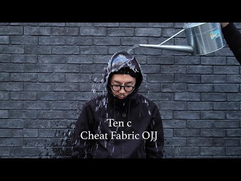 Ten cのアノラック、カーゴパンツを着用し、どのくらいの撥水力があるのか水をぶっかけてもらいました。